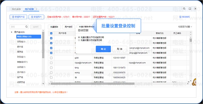 用户权限可控制不允许操作员修改登录系统日期,登录日期以服务器时间为准。需结合单据日期字段不可改,单据编码自动生成不可改,三者联用才可实现