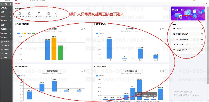 首页直接显示常用报表以及管理层关注的可视化图标,使软件操作更简单。