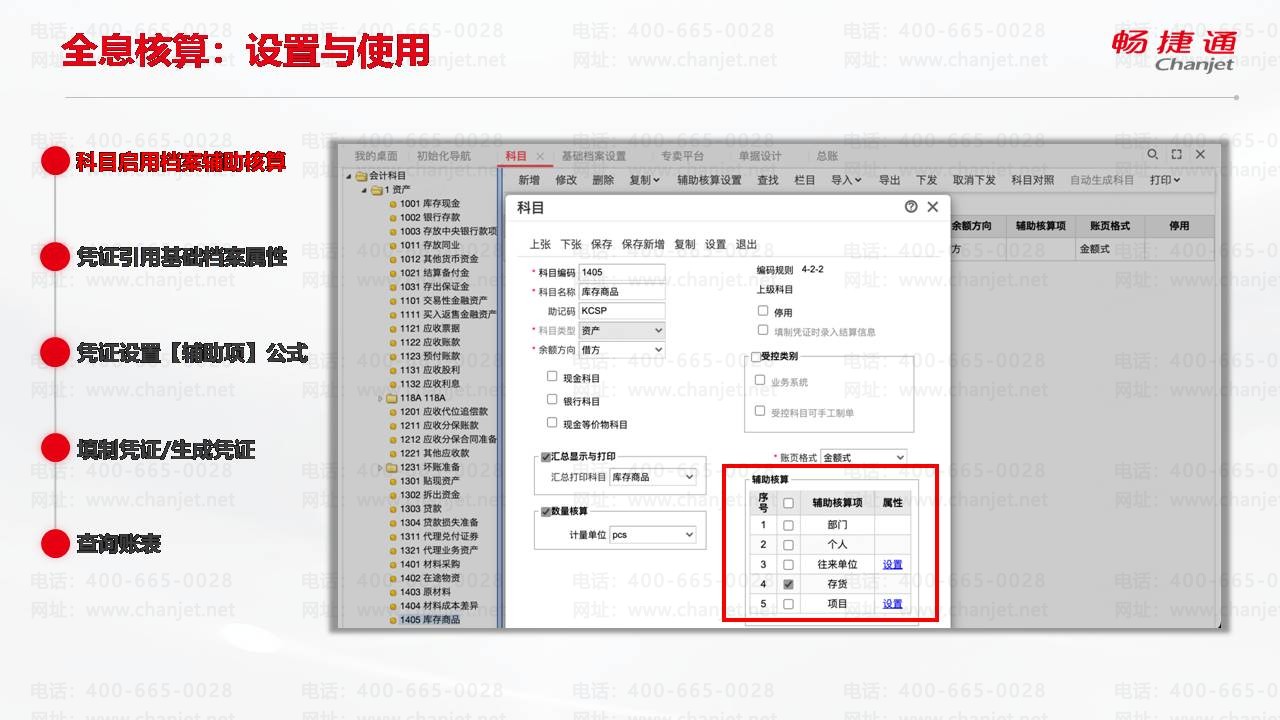 畅捷通T+全息核算科目启用档案辅助核算