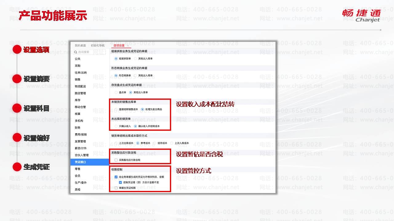 •销货单立账时,可支持收入成本配比结转,对未出库的销货单既确认收入又结转成本,对未销货的销售出库单确认发出商品。