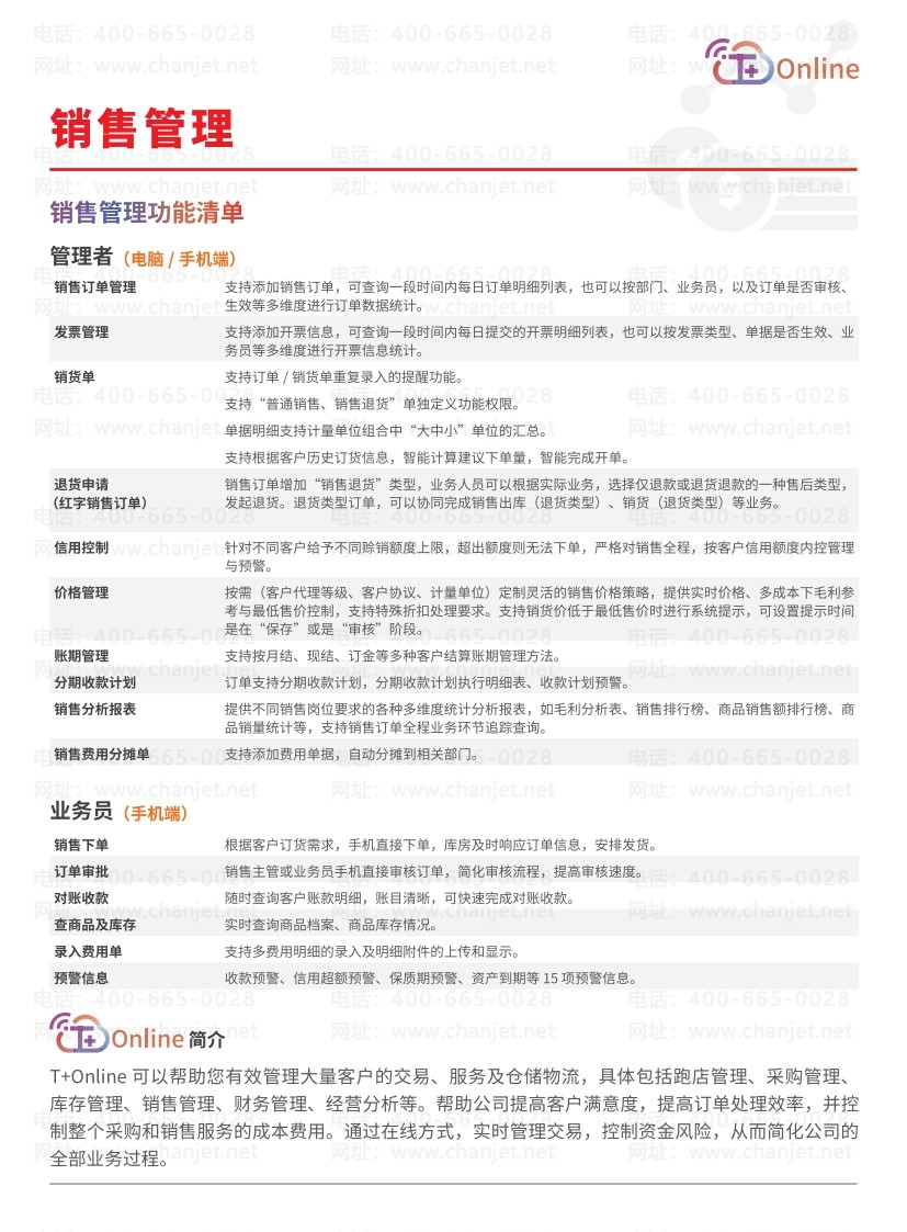 • 业务在线处理。外勤人员或业务员通过在线下销售订单、销货单、退货单等,实现所有销售业务流程的在线化处理,告别手工记录。
