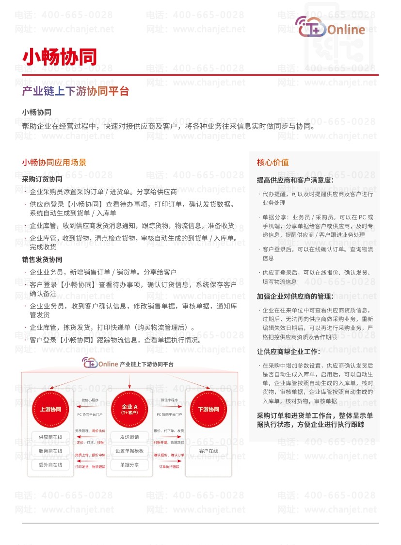 帮助企业在经营过程中,快速对接供应商及客户,将各种业务往来信息实时做同步与协同。