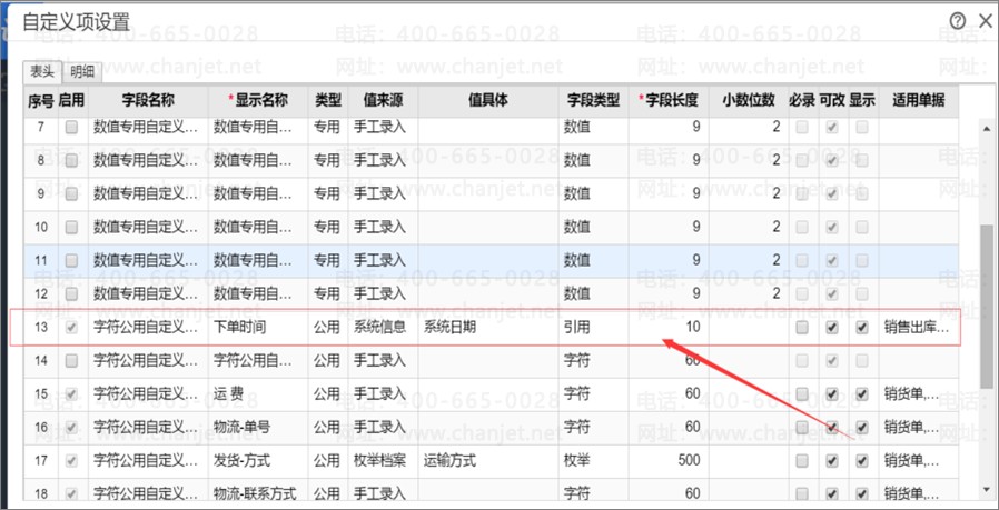 在销售订单设置公共字段与销售出库单连用,“下单时间”引用系统日期即可。