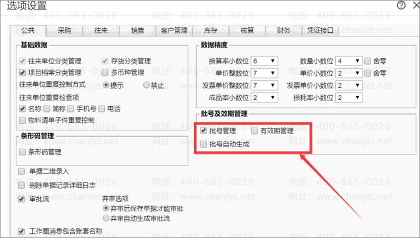 高邮市畅捷通T+软件对有效期及批号管理的操作