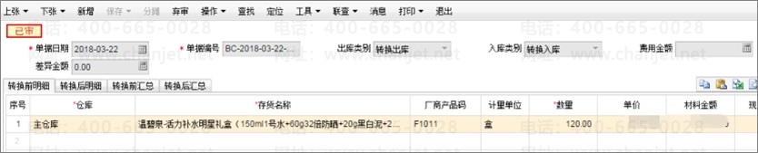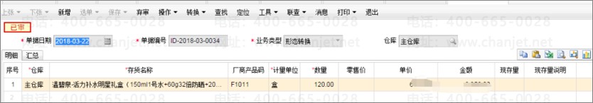 问题:产品从厂商进货时是套盒,会涉及拆盒出货,或者单个产品组装成套盒出货的情况。实现方式:填写形态装换单实现客户要求