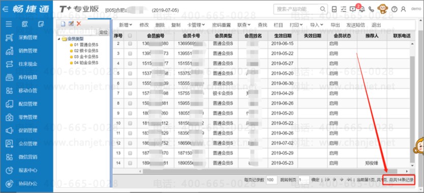 到现在为止,T+会员档案里有 14 个会员档案(以前的会员档案在升级的时候都删