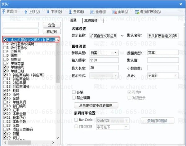 扩展自定义项数量:系统允许各分类下最多增加100个扩展自定义项。