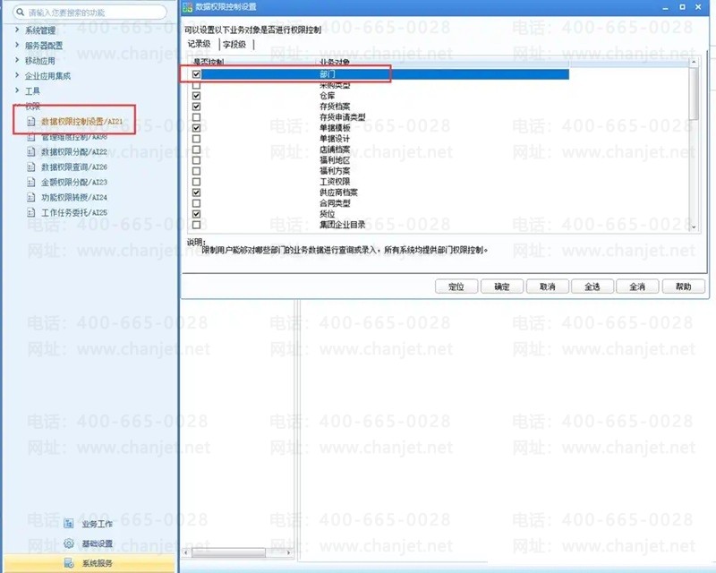 系统服务-----数据权限控制设置中勾选部门的是否控制