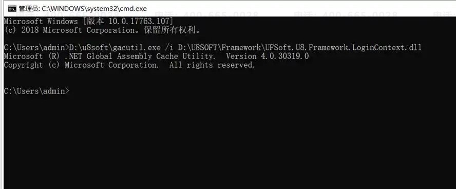 D:\u8soft\gacutil.exe /i D:\U8SOFT\Framework\UFSoft.U8.Framework.LoginContext.dll