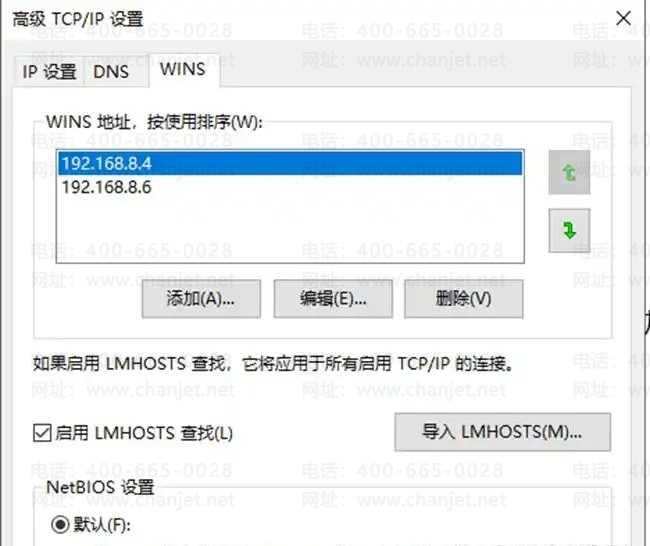 (路径:控制面板--网络和共享中心--本地连接--属性--常规TCP/IP--双击--高级--wins--添加ip)