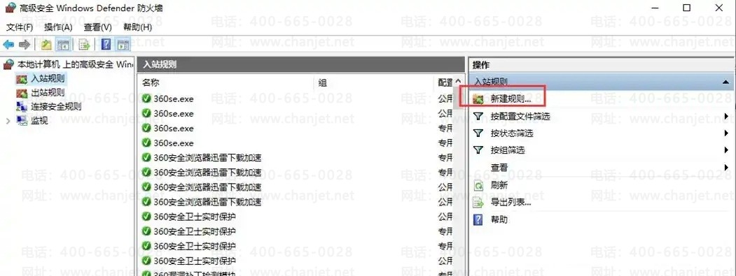 (路径:控制面板--Windows Defender 防火墙--高级设置--入站规则、出站规则)