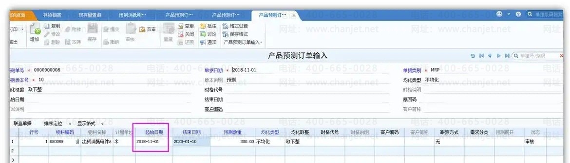 建立出货消抵存货A,增加预测订单如下,起始日期为11月1日,Window电脑日期为11月2日。