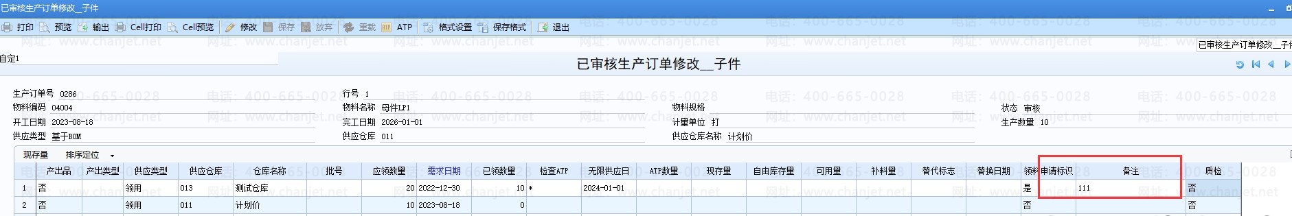 例如,已经做了申请领料,将领料申请标识修改为否,但是没有领料则可以直接修改