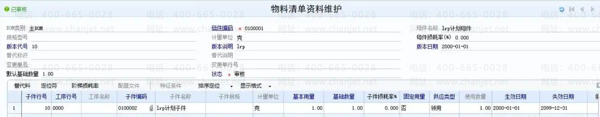 生产制造-物料清单-物料清单维护-物料清单资料维护中维护bom信息