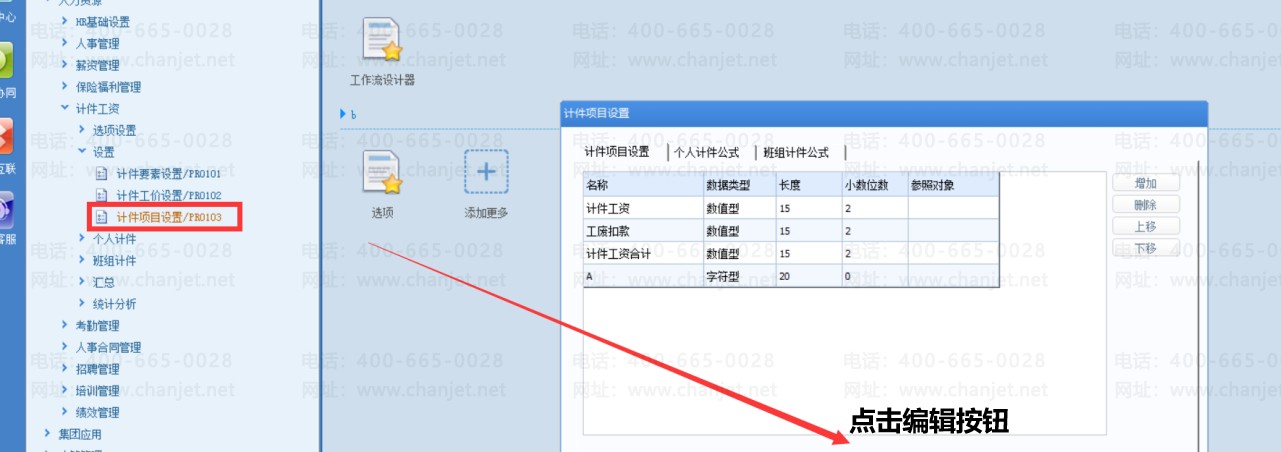 1、打开【计件项目设置】-【编辑】进入到可编辑状态