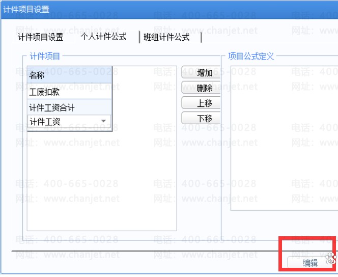 1、打开【计件项目设置】-【编辑】-【个人/班组计件公式】进入到可编辑状态