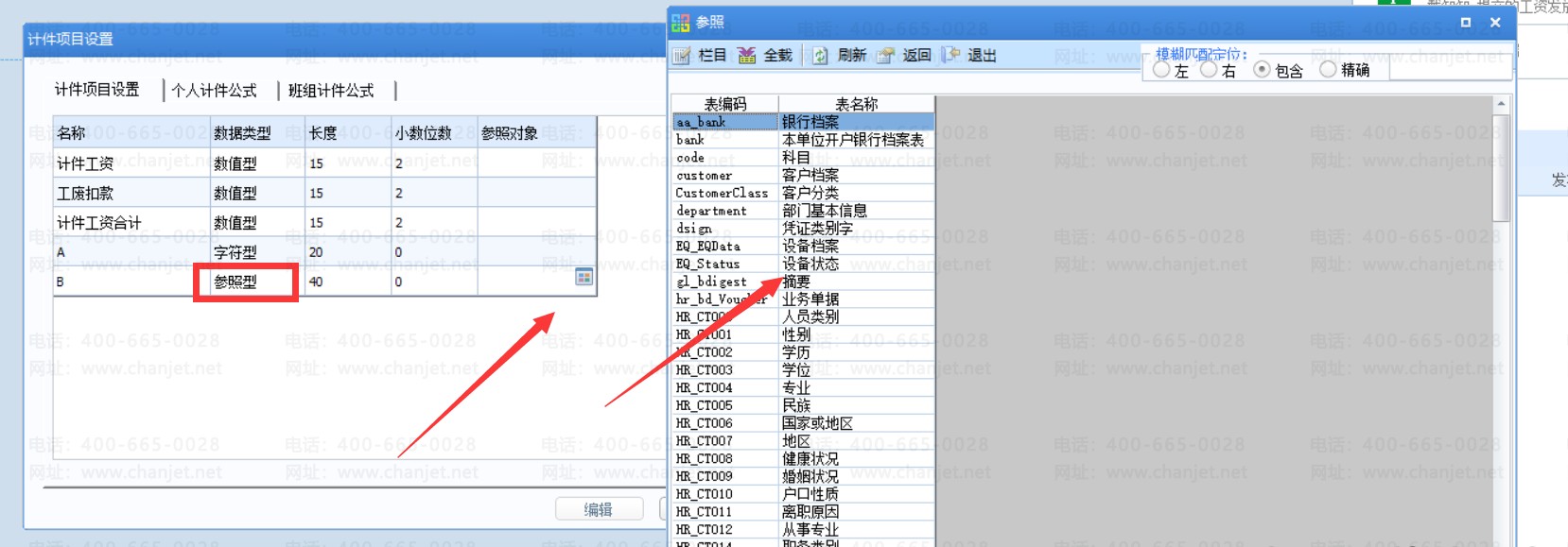 3、如果“计件项目”是来源于系统档案,可把【数据类型】维护为“参照型”