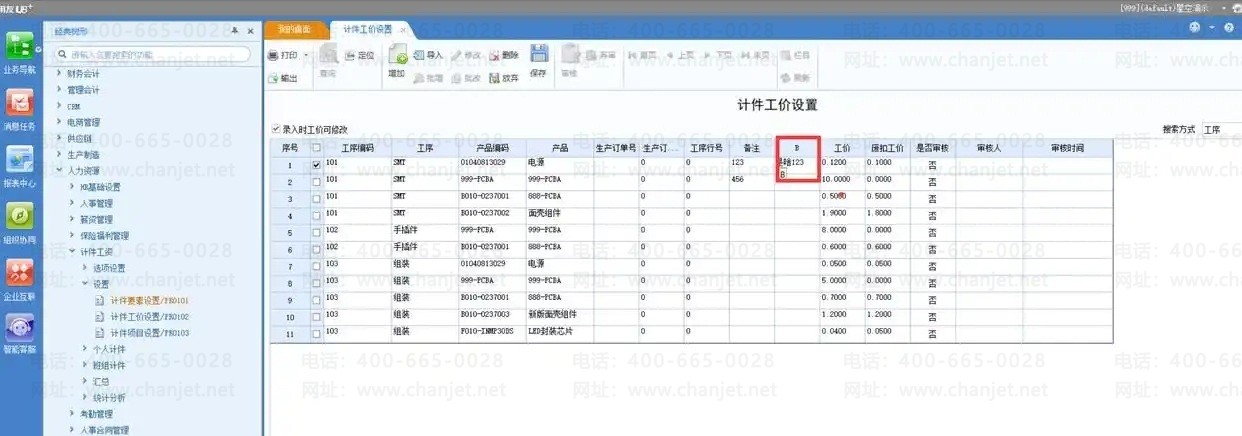 2、增加后,【计件工价设置】中会显示该“自定义计件要素”,并可以编辑该字段