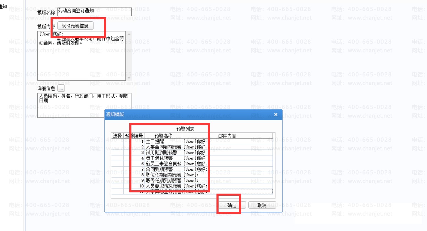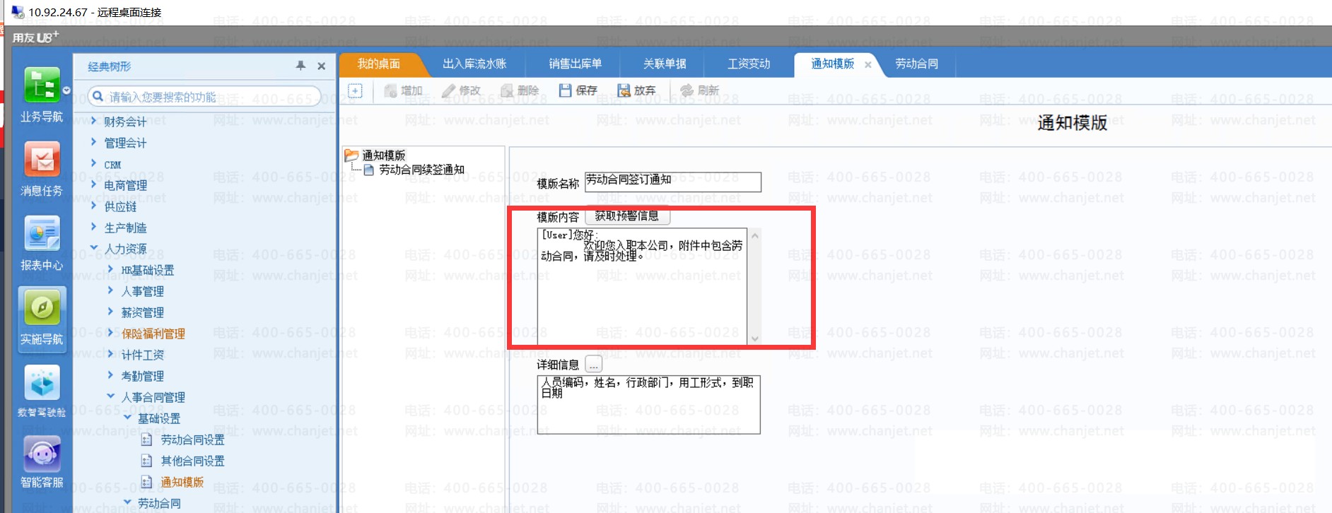 B、部门负责人、其他人员工——【人事合同管理】-【基础设置】-【通知模板】维护