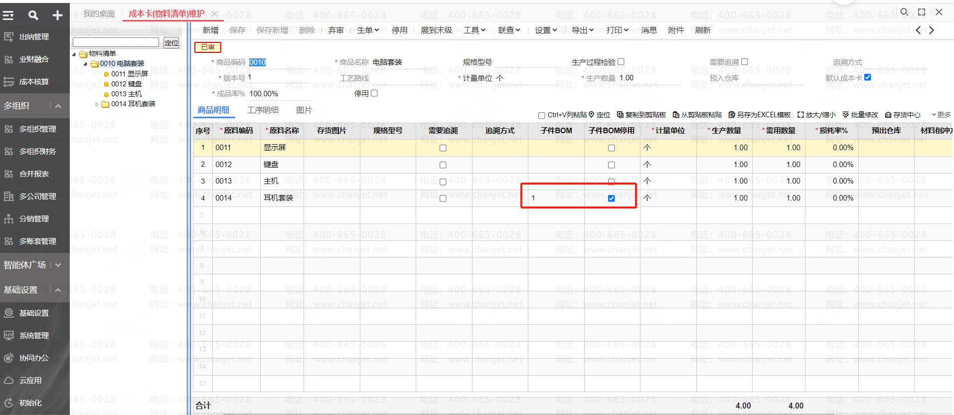 系统管理--数据导出里导出物料清单时,导出的子件明细数据和物料清单界面的子件明细数量不一致。(只有数据导出的异常,在物料清单详情里和物料清单正向查询里导出都是正常的)