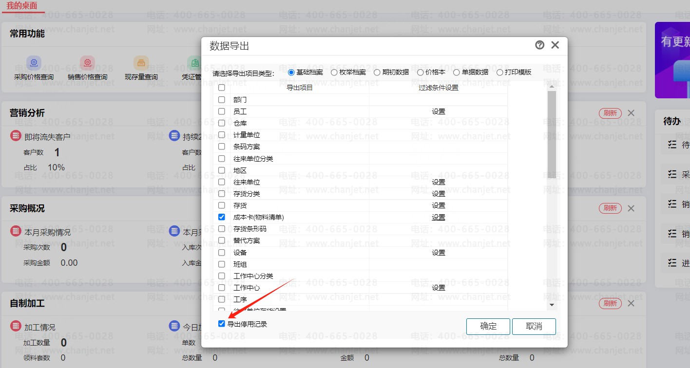在系统管理数据导出里导出物料清单时,物料清单存在停用的子件bom或者存货时有一个可选的选项【导出停用记录】,这个默认是不勾选状态,对于物料清单,如果子件明细的存货停用或者子件明细的【子件BOM】对应的物料清单停用,这一条子件明细时不导出的,如果希望导出,需要勾选【导出停用记录】可以根据实际场景选择是否需要导出停用的数据。