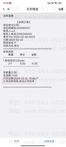 【问题描述】:业务员在使用T+移动端下单时,使用蓝牙小票打印单据时需要将公司主营业务信息打印在表尾要如何设置呢?