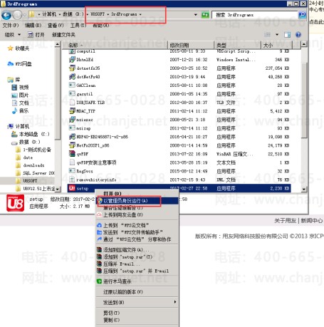 2、将服务器上自动生成的“setup.exe“复制到客户端,并右键-选择使用管理员运行进行安装