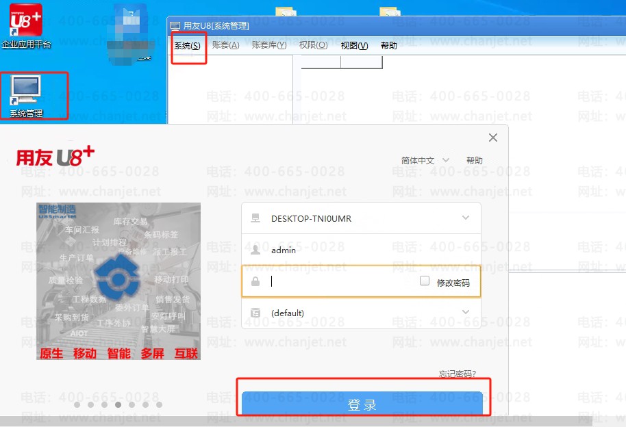 1.打开【系统管理】,点击系统,注册,使用系统管理员(admin)登录系统管理;
