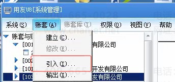 2.单击【账套】的下级菜单【引入】,则进入引入账套的功能;