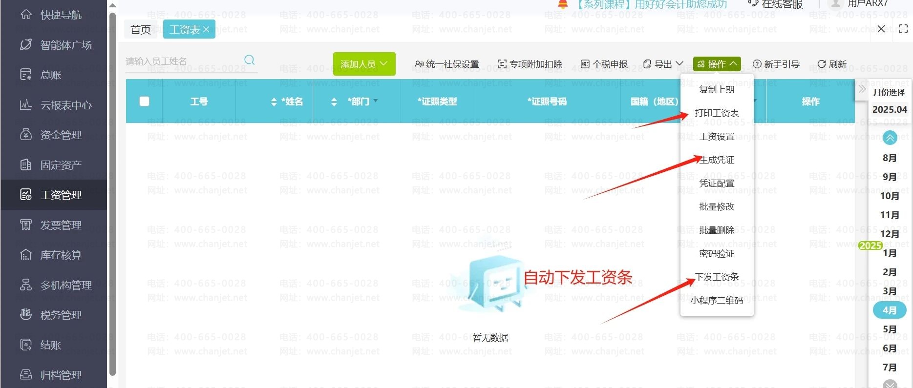 「远程发薪」功能可一键将电子工资条批量发送至员工手机,高效便捷。即便居家办公,也可轻松处理多家企业客户的薪资发放事务。