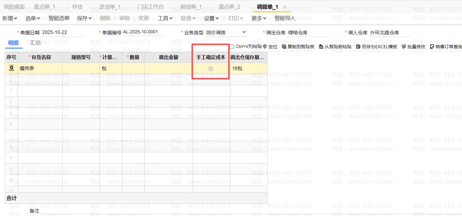 1.同价调拨的手工确定成本选完存货之后就变成默认打勾并且是灰色的不可改;