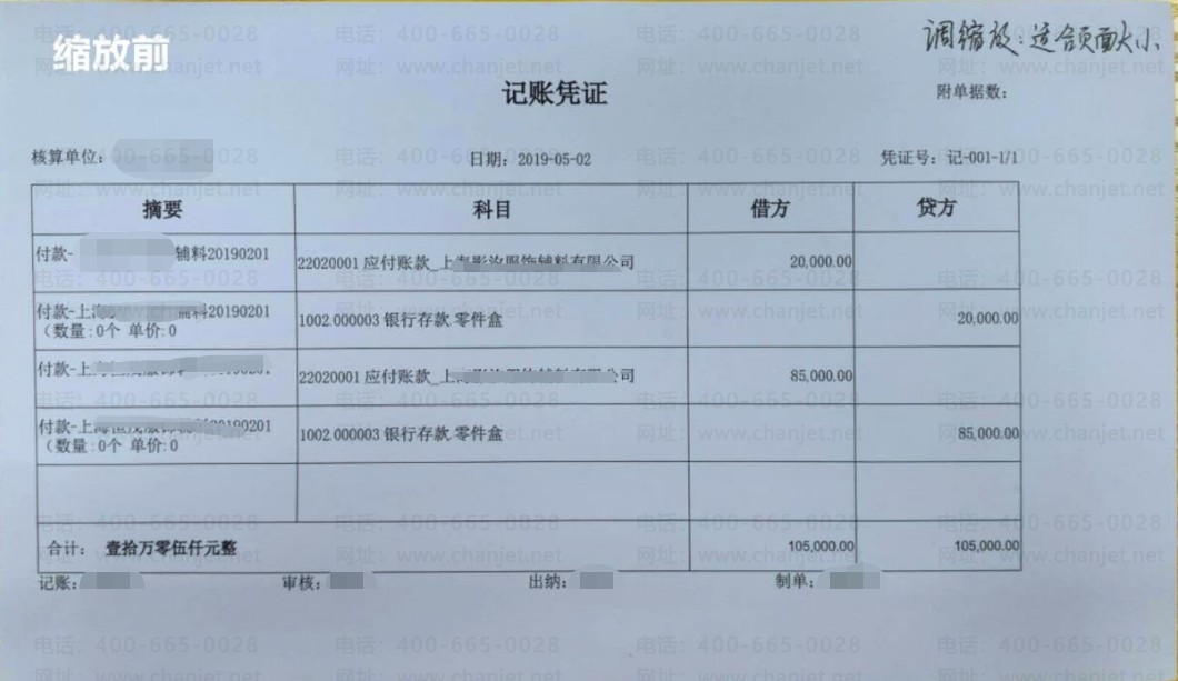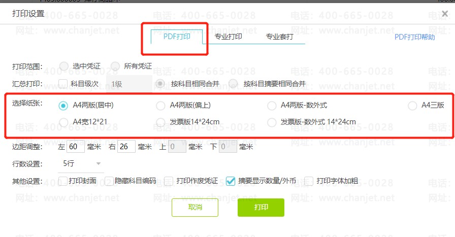 当用户使用 PDF 打印的效果偏左或者偏右,可以使用缩放微调。如下图 PDF 发票版为例: