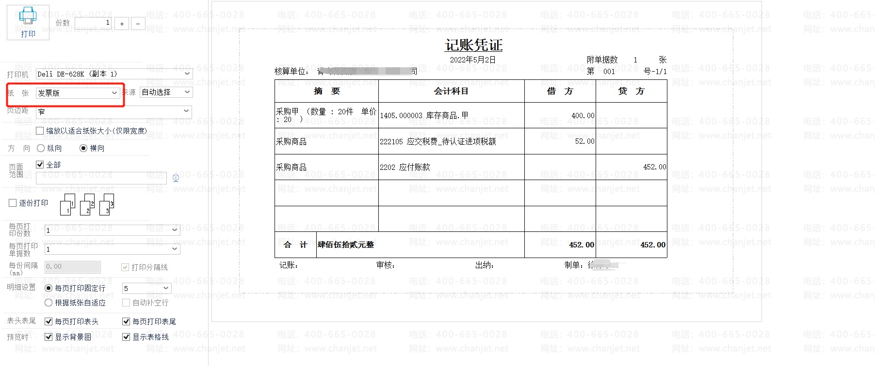 普通 A4 纸,可以选择打印一版,相对 PDF 打印此种相对灵活,可以调页边距、打印的分录数等。