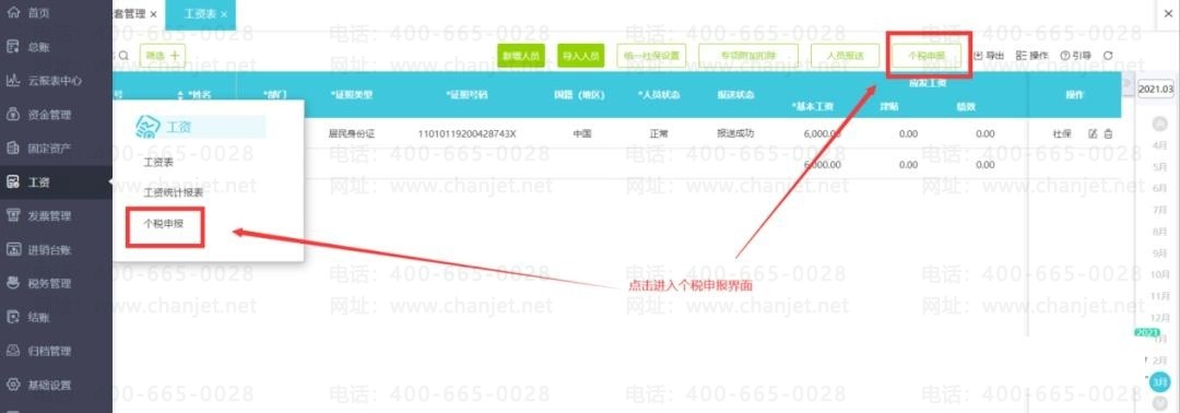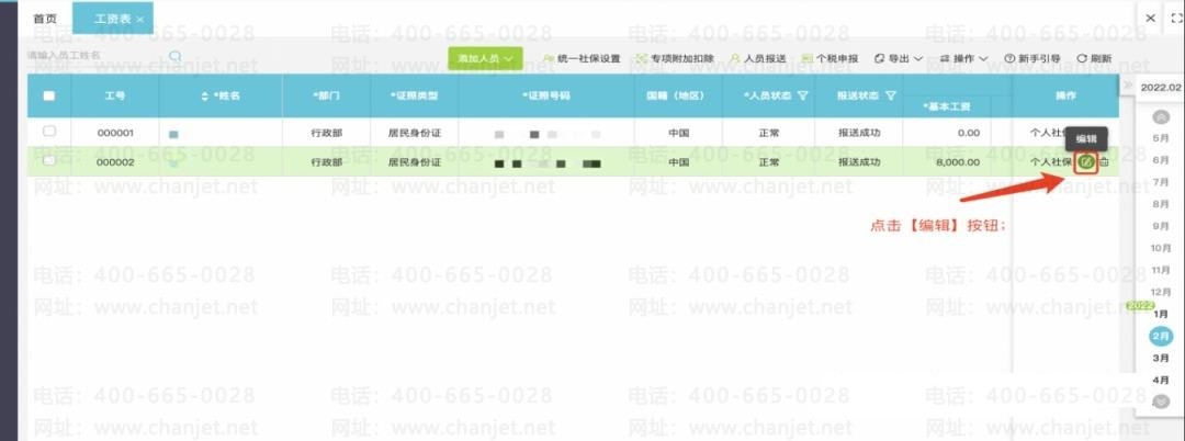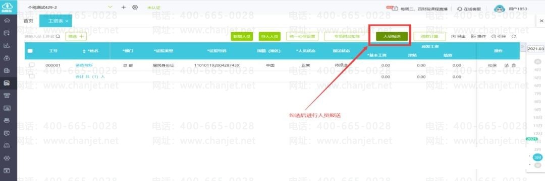 1.在已完成工资导入的界面,点击【人员报送】,即可将人员信息提交至税务系统。
