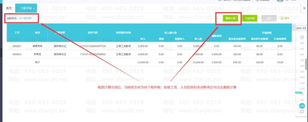 1.个税计算范围:支持员工正常工资薪金所得申报;
