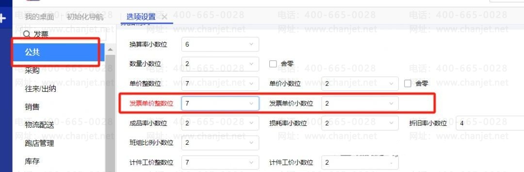 在【选项设置】--【公共】中,把【发票单价整数位】设大,【发票单价小数位】设大即可。