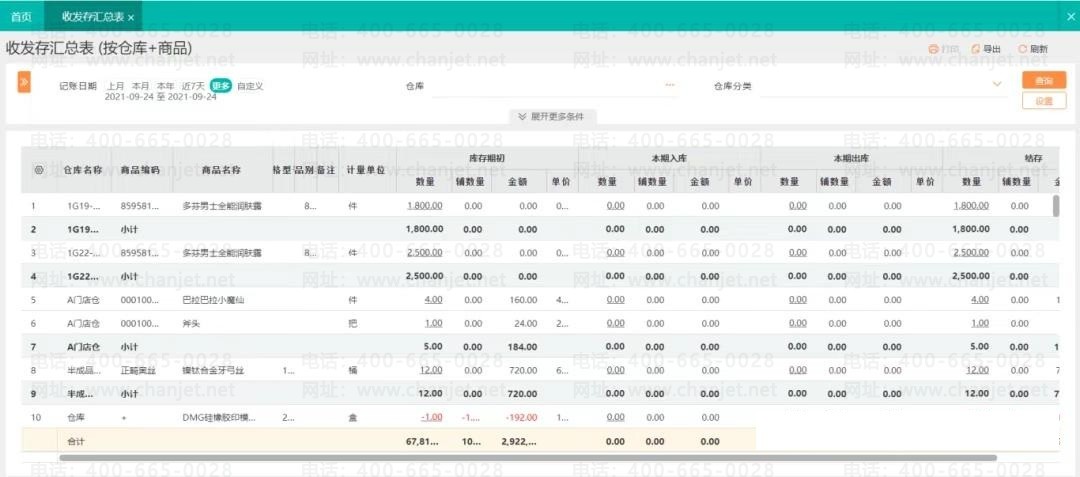 库存商品是企业最重要的资产,积压或缺货对于企业销售、运营都会带来很大风险。各种业务下产生的仓库商品数量的变化,及成本的变化,老板、库管都要清楚明晰!