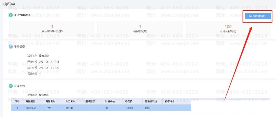 3、在单品打折的促销方案中点击该方案进入后可以看到对应的促销记录