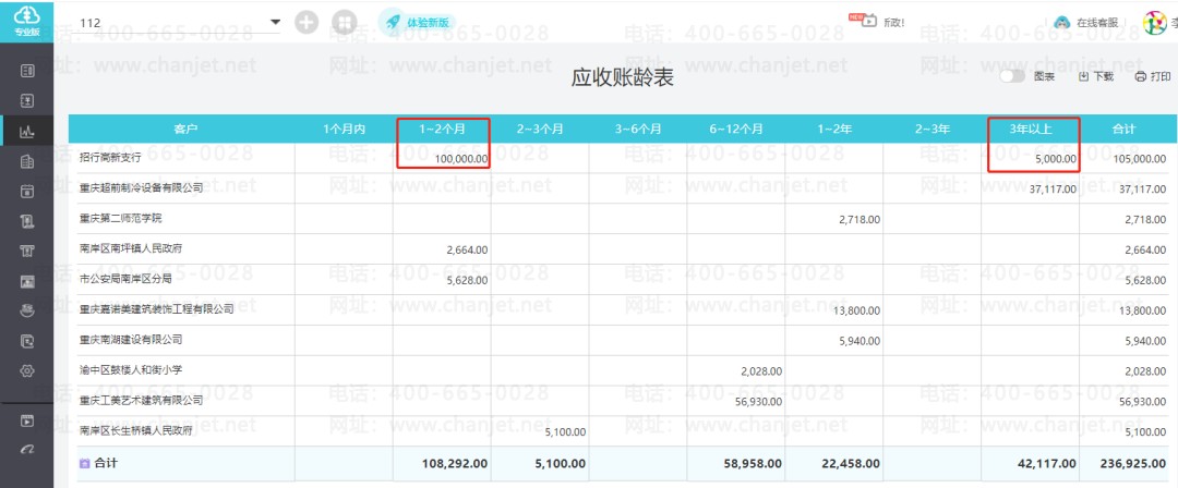 使用畅捷通好会计可以快速了解应收账款信息,掌握了大额欠款与逾期客户,并将这些信息定期传送给具体的催收人员。否则,依靠对明细账的数据,制定Excel表格加工、整理,还不知道要耗费多少时间精力,才可以做好!那么畅捷通好会计是怎么实现便捷管理的呢?就是下面两张表啦↓↓↓