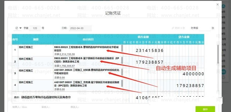 某建筑施工企业的会计小吴找到客户成功经理抱怨,“工程施工”明细科目特别多,而且很多科目设置了项目辅助核算,每个月手工结转”工程施工”科目至“主营业务成本”,要选择工程施工下的每一个末级科目,还要分别选择末级科目下的辅助核算项目,这么算下来,一张凭证得录入几十行,工作量大,容易出错。