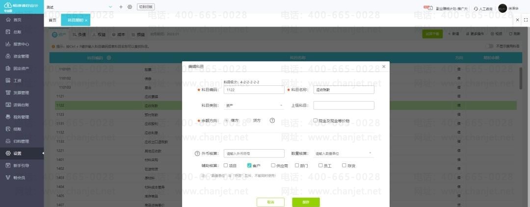进入【设置】-【科目期初】,给应收账款科目添加明细科目或者挂上客户辅助核算,两种方式二选一即可;