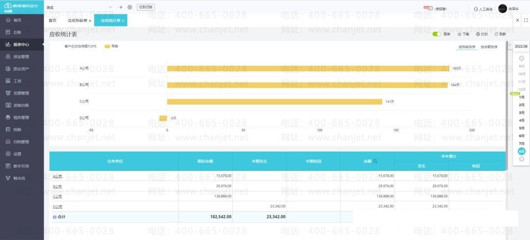 进入【报表中心】-【应收账龄表】直接查看各客户的账期情况,同时【应收统计表】也可以查看整体的应收数据。