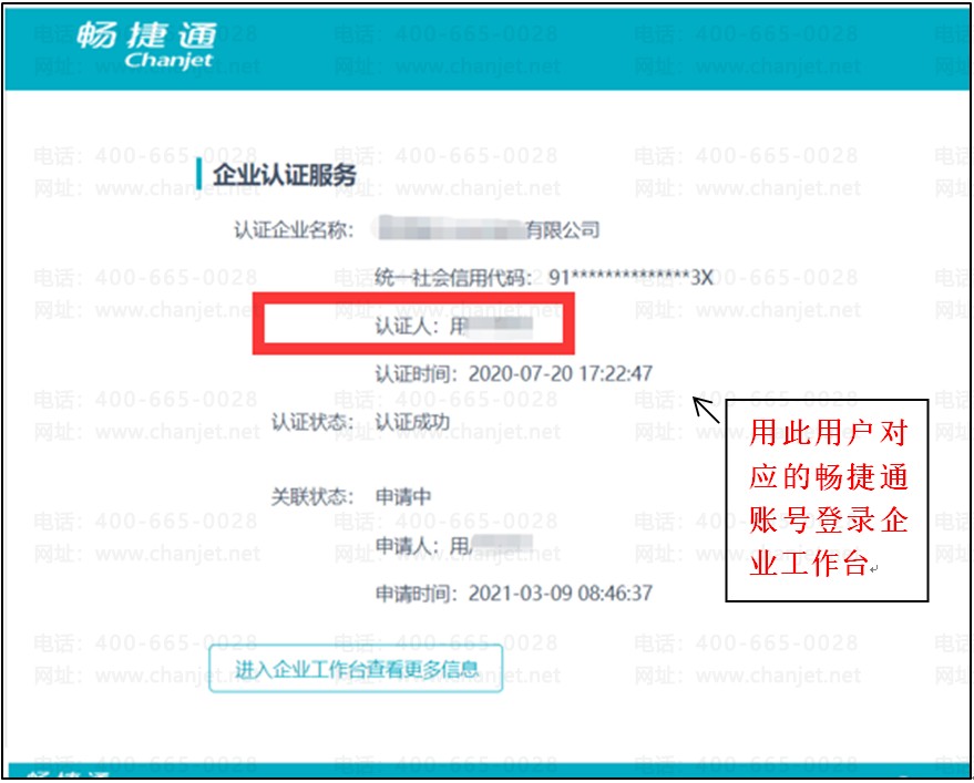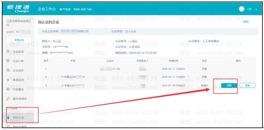 需要第一次认证通过的人登陆【企业工作台】,点击左边【我的企业】-【我认证的企业】,然后点击“同意”即可,如下图: