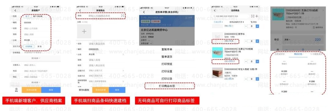 客户可以在好业财APP进行客户、供应商、商品快速建档、客户销售时历史采购价、等级价,自动带出辅助业务员快速报价。