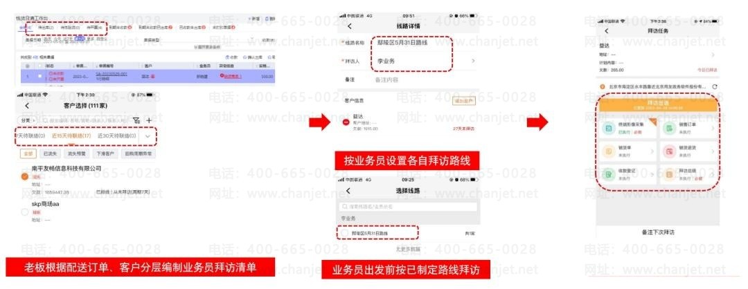 解决方案:老板根据送货清单预设客户配送拜访路线。