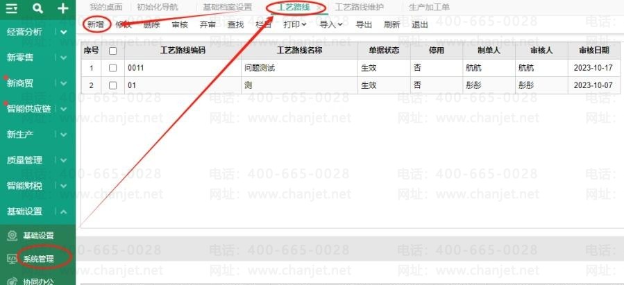 2、基础设置-工艺路线-新增