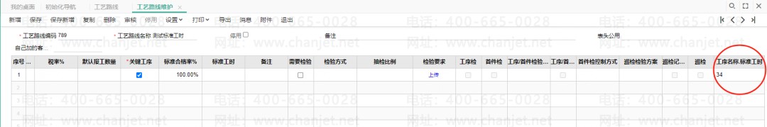 5、再次打开之前保存的【工序路线】带出维护好的标准工时字段