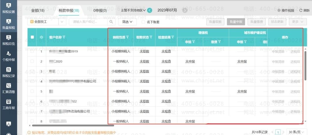在易代账软件中,直接可以批量一键多家公司申报税,申报数据是根据代账会计做账取票情况自动生成的,智能化程度高,报税效率明显提升,免税局切换烦恼,免计算量大、计算错误烦恼。