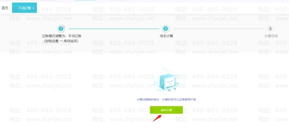 2、【库存核算】-【手动记账】,点击成本计算,数据可以立即同步。