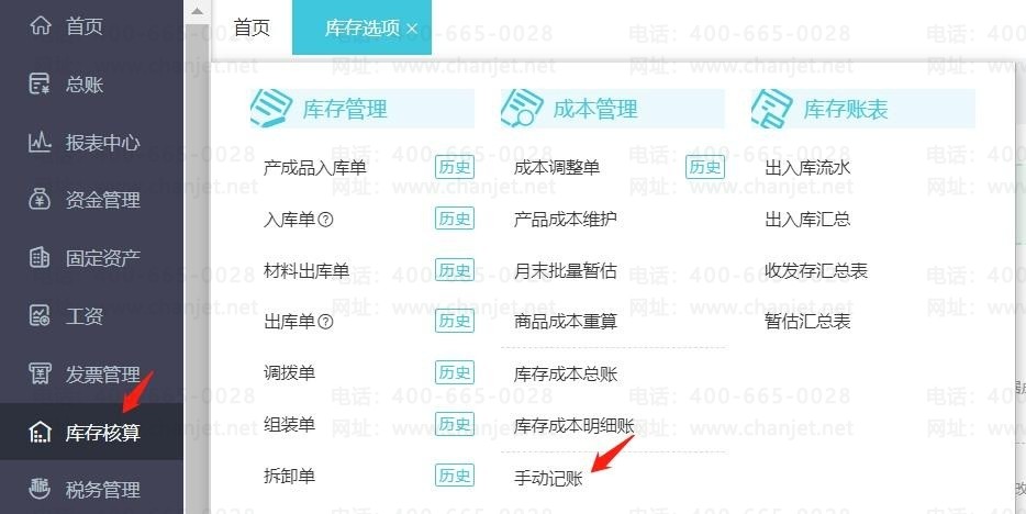 1、【设置】/【基础设置】-【库存选项】选择手动记账,点击保存。